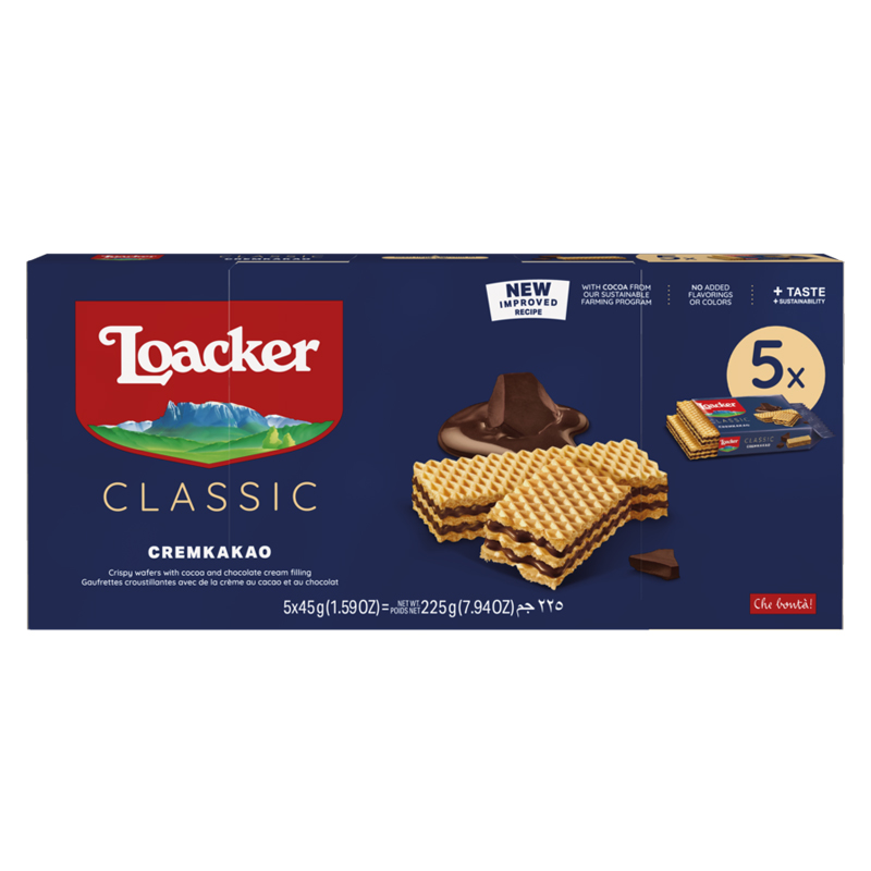 لواكر كلاسيك رقائق ويفر مقرمش بحشوة كريمه الكاكاو 45 غ 5 حبه
